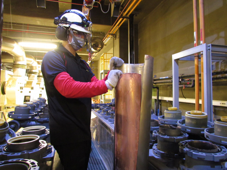 k1体育将废弃物转化成有效的工业或民生原物料,图为废铜液淬炼后再制成纯度极高的铜管